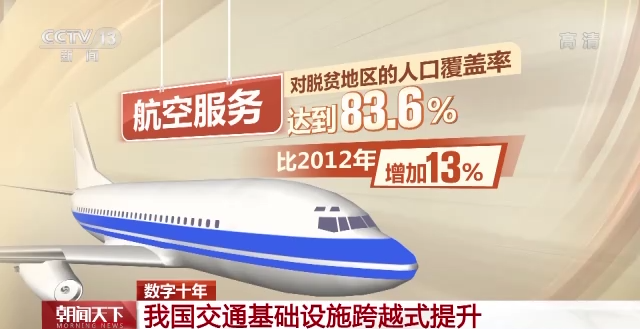 十年來,我國新建遷建82座運輸機場、新增3000多條航線。航空服務對脱貧地區的人口覆蓋率達到83.6%,比2012年增加了13%。