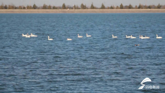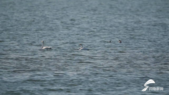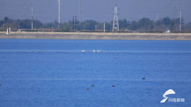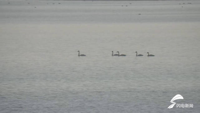 眼下正是候鳥遷徙期,夏津縣惠津湖水庫迎來了今冬首批遷徙5只小天鵝。