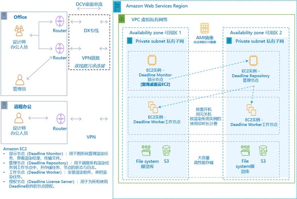 - 神州泰嶽協助客户一鍵部署雲中渲染解決方案,使用NICE DCV協議運行雲桌面。後台渲染集羣模式基於Deadline,杜絕設計師任務排隊時間,可設置數百台服務器同時渲染,完全兼容現有系統,設計師使用習慣不需要改變。