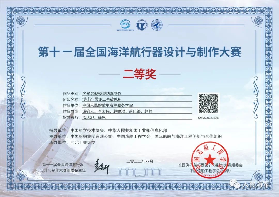 日前,第十一屆全國海洋航行器設計與製作大賽 在西北工業大學舉行。經過激烈角逐,海軍勤務學院代表隊榮獲特等獎1項、二等獎3項。 該院副教授林偉介紹,這次比賽檢驗了船海專業學生綜合素質、原創能力及實踐能力,為軍隊打造高層次、應用型技術人才儲備了力量。