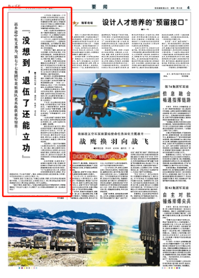 此前,3名退伍老兵曾服役的第77集團軍某旅決定,為她們分別記三等功一次,以表彰她們在退伍返鄉途中見義勇為的先進事蹟。