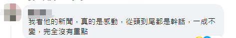 在林士鋒臉書評論區,有不少島內網友留言發表看法:“這‘執政黨’的某些特質,説是台灣之恥,應該不為過吧?”“我看他的新聞,真的是‘感動’,從頭到尾都是幹話,一成不變,完全沒有重點”。↓