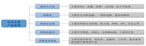 智微智能成立於2011年,長期以來深耕教育辦公類、消費類、網絡設備類、網絡安全類、零售類及其他電子設備產品的研發、生產、銷售及服務,全力為客户提供各種智能場景下的硬件方案。其中,教育辦公類產品主要包括 OPS 電腦、雲終端等硬件設備;消費類產品主要包括PC台式電腦、PC一體機等硬件設備;網絡設備類產品主要包括交換機、路由器、工業網關等硬件設備;網絡安全類產品主要為網絡安全設備;零售類主要包括零售終端、商顯終端、金融終端等硬件設備。目前智微智能產品廣泛應用於政府、運營商、互聯網、金融、教育、醫療、能源、交通、商業、製造業及個人消費市場等諸多細分應用場景。