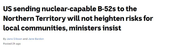 報道稱,澳北事務與資源管理部長馬德琳•金於當地時間31日就相關質疑回應稱,美國向澳大利亞派遣具有核打擊能力的B-52戰略轟炸機並不會增加當地社區風險,還能振興相關地區經濟。“這是值得歡迎的投資,對相關社區有好處。”“我認為這不會增加當地社區風險”,馬德琳•金試圖以此淡化相關擔憂。北領地副首席部長曼尼森也聲稱,“澳大利亞北領地已經是一個戰略防禦地點,對增加B-52 無需擔心”,“我認為相關地區民眾會對此感到非常滿意,他們瞭解我們的戰略位置,會非常支持這項國防投資的”。