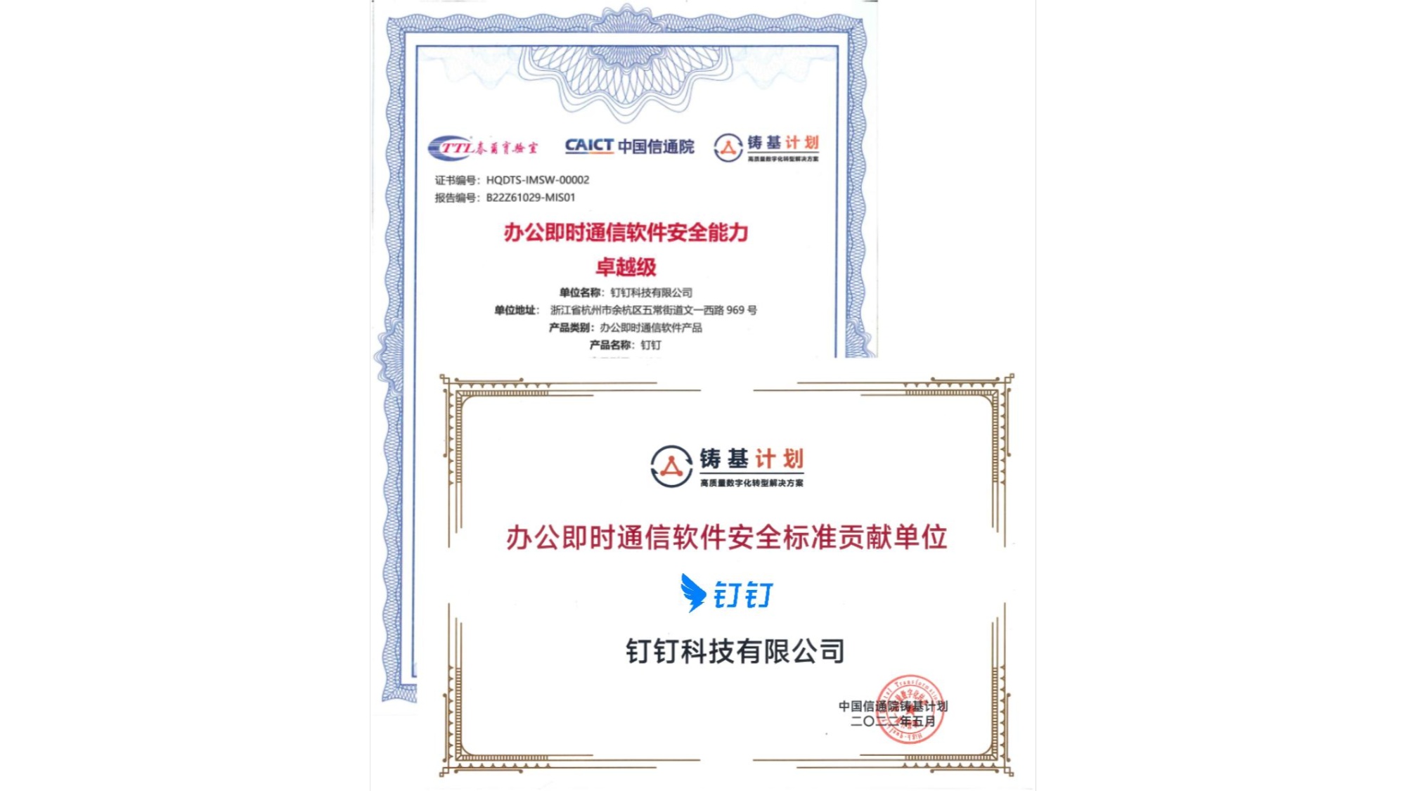 近日,中國信通院“鑄基計劃”公佈了辦公即時通信軟件安全評估工作的進展,釘釘首批通過該項評估檢測,獲得最高安全級別的“卓越級”認證。