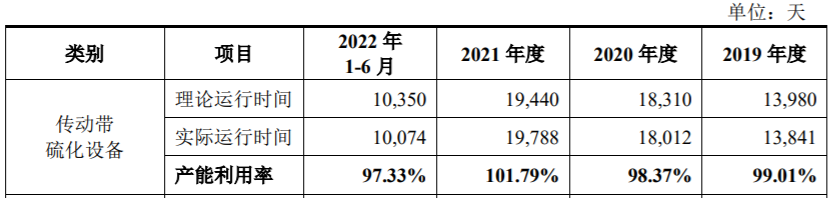 不僅如此,由於硫化環節是公司生產的主要瓶頸,硫化設備的利用率情況能更為客觀的反映公司主要產品產能情況,根據招股書第124頁披露的主要生產設備信息,公司僅擁有一台硫化機,賬面原值為50萬元、成新率為68.34%,考慮到機器設備類固定資產折舊年限為10年,對應該設備已使用時間為3年多,進而可以推算出硫化機此硫化機是在不早於2019年初開始投入使用的。