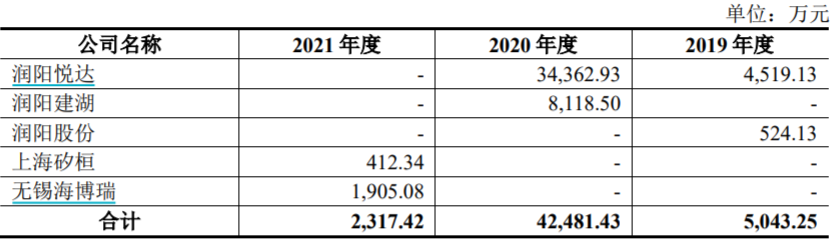 此外,根據招股書披露,報告期內公司業務發展較快且固定資產投資較大,為平衡部分子公司短期資金需求,公司及子公司曾存在無真實交易背景的票據流轉情況,主要發生在合併報表範圍內公司之間。其中包括與孫公司無錫海博瑞在2021年發生的金額為1905.08萬元的無真實交易背景的票據流轉。