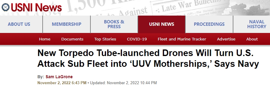 【環球網報道 記者胡錦洋 索炎琦】“美海軍稱,新型魚雷管發射無人潛航器將使美國攻擊型核潛艇變為‘水下無人潛航器母艦’。”美國海軍協會網站(USNI)11月2日以此為題進行報道,多位美國海軍官員本週聲稱,美國海軍核動力潛艇艦隊將在不久的將來通過魚雷管發射水下無人潛航器,並能進行回收。