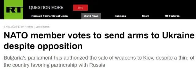 RT報道稱,向烏克蘭提供武器一事在保加利亞民間爭議極大,根據斯洛伐克智庫“Globsec”的調查數據,近三分之一的保加利亞人將俄羅斯視為他們國家最重要的戰略伙伴,35%的人認為烏克蘭是“西方的傀儡”,38%的人希望退出北約。