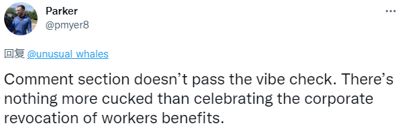 不過,也有人評論稱:“(轉發這條消息的)評論區怎麼這麼烏煙瘴氣的。沒有什麼比慶祝公司取消員工福利更讓人惱火的事了。”