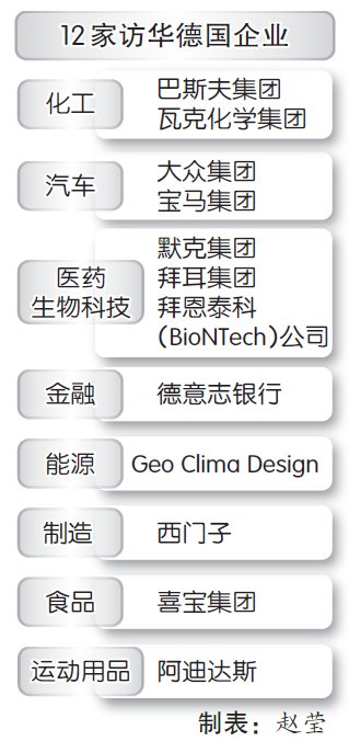 除上述德企高管外,西門子、瓦克化學集團、阿迪達斯、嬰兒食品製造商喜寶、製藥公司拜耳以及加熱技術公司Geo Clima Design的負責人也在名單之中。據德國《商報》此前報道,100多家公司申請政府專機上令人羨慕的座位,最終12家獲准,因為中國的商業從未像今天這樣重要。分析稱,此次跟隨朔爾茨訪華的德國商界領袖雖然人數不多,但分量十足,既包括來自汽車、化工、製造業等德國傳統優勢產業的代表,也包括德國拜恩泰科(BioNTech)等新興的生物科技公司,覆蓋了中德經貿中的重點領域與潛力行業。