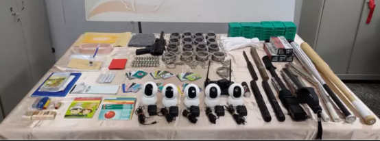 新北市刑事警察大隊持續追查發現,該詐騙團伙除了淡水,在桃園市中壢區還有另一處據點,便迅速前往青峯路一處社區大樓蒐證查訪,發現屋內有32人被關押。警方在現場發現束帶、甩棍、電擊棒、手銬等凌虐拘禁器具,並將其全數查扣,手機、監控器等證物也悉數帶回。