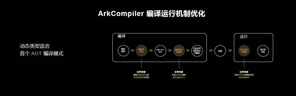 編譯器ArkCompiler,針對傳統的動態類型語言因為變量不確定及編譯解析優化都在啓動運行階段導致應用啓動慢的問題,突破了動態語言可以帶類型編譯,支持對象持久化和重綁定技術,實現了業界首個動態類型語言AOT編譯模式,可顯著縮短應用啓動運行時間。高負載複雜應用在ArkCompiler的加持下,在低配置機型的啓動速度相比傳統模式提升30%。同時,ArkCompiler還提供了多種源碼保護技術,大幅提升JS/TS類型源碼安全度。