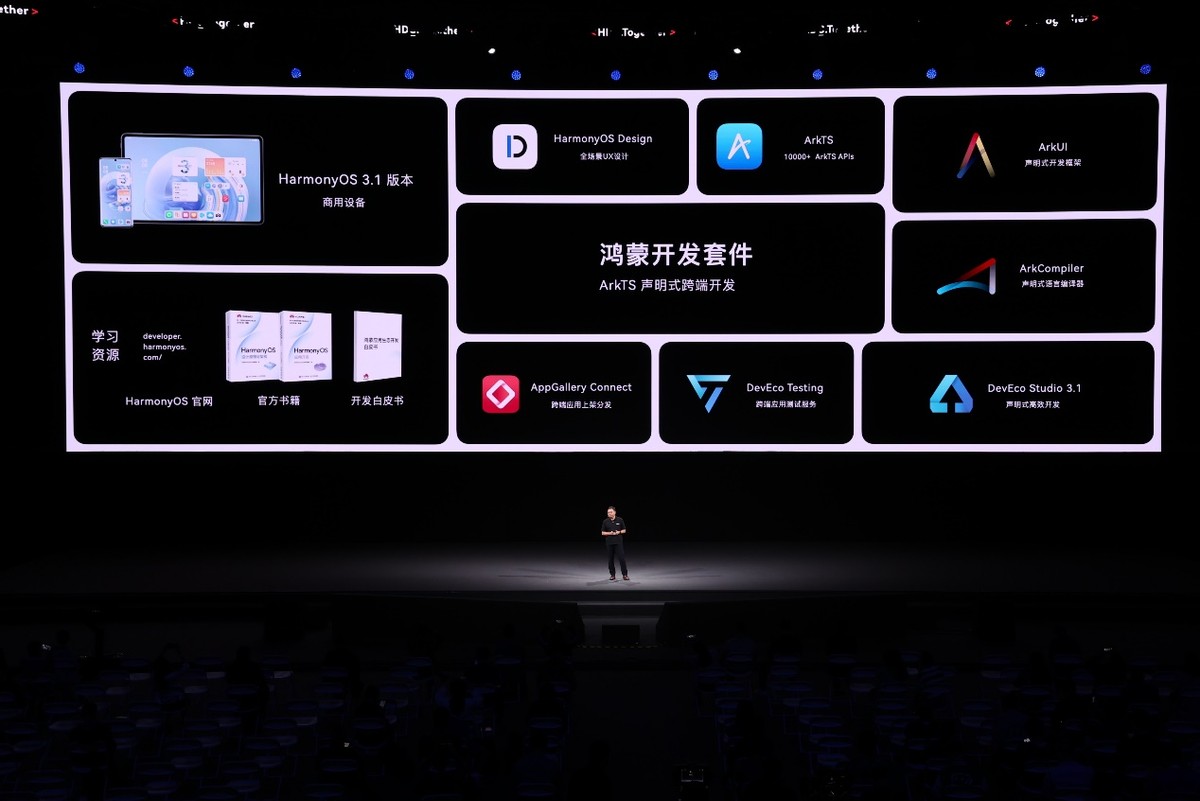 開發工具方面,HUAWEI DevEco Studio 升級到3.1版本,配套 ArkTS 聲明式開發全面升級,支持熱重載、智能編輯、跨語言調試、多工程管理等多種實用功能,助力ArkTS跨端應用高效開發,快速調試。