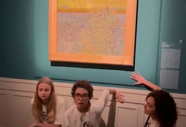 梵高名畫《播種者》遭氣候問題抗議者潑湯,4人被逮捕