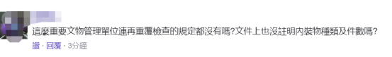 也有網友問,這麼重要文物管理單位連重複檢查的規定都沒有嗎?文件上也沒註明內裝種類及件數嗎?↓