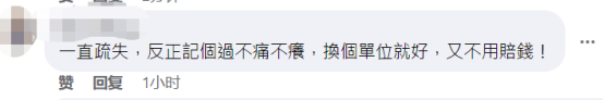有網友諷刺説,“一直疏失,反正記個過不痛不癢,換個單位就好,又不用賠錢!”↓