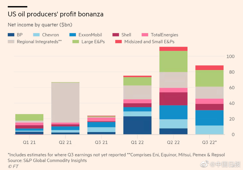 有人飽受衝突之苦,有人在大發橫財。據英國《金融時報》11月5日報道,自俄烏衝突以來、國際能源市場震動,油價上漲,美國石油生產商成為最大贏家,獲利超2000億美元。普氏能源資訊為《金融時報》進行的盈利分析稱,今年第二和第三季度,美國上市油氣公司的淨利潤總額達到2002.4億美元。這個數字是美國能源行業有史以來最賺錢的6個月,並且預示着該行業將迎來前所未有的一年,該計算包含了油氣巨頭及中小型公司。