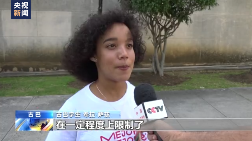 *古巴學生 希拉·薩茲:*我認為封鎖阻礙我們獲取很多必需品,在一定程度上限制了我們獲得醫療用品和食物。我認為封鎖是不公平的政策,如今古巴人民是美國政府採取的所有這些措施中受害最深的人。