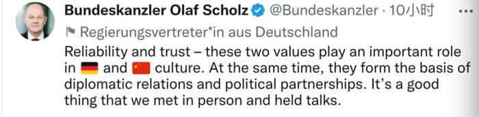 中新網北京11月6日電(甘甜)“可靠和信任——這兩種價值觀在中國和德國的文化中扮演着重要的角色。同時,它們也是外交關係和政治夥伴關係的基礎。很高興我們面對面進行了會談。” 結束對中國的正式訪問後,德國總理朔爾茨在社交媒體上這樣寫道。