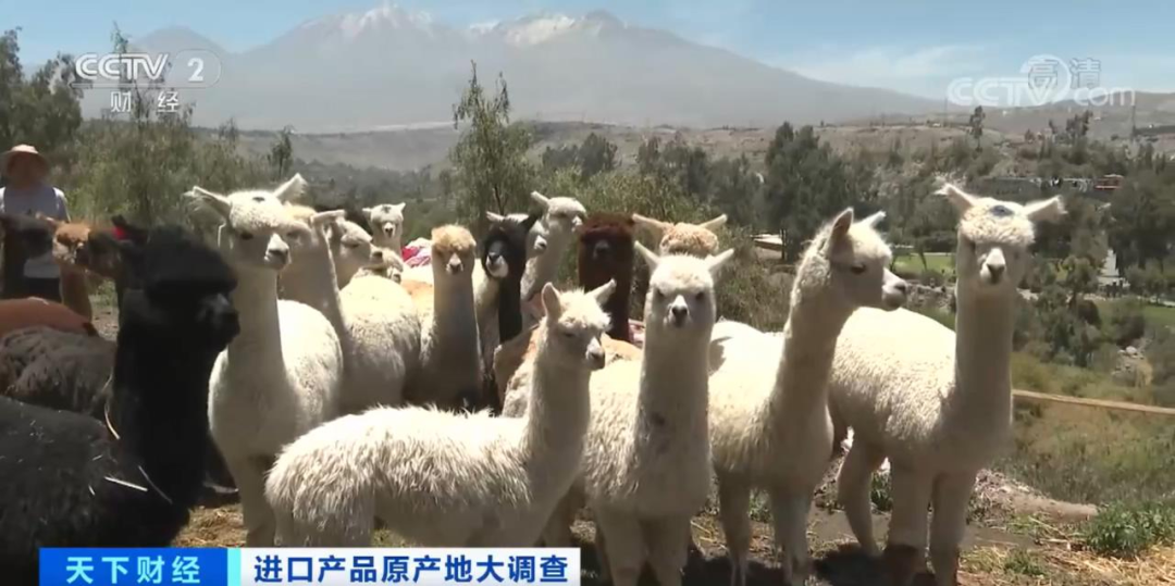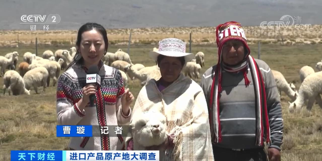 記者 曹璇*:* 這裏是距離秘魯第二大城市阿雷基帕100多公里以外的一個天然的羊駝農場,這個羊駝品種是叫做Huacaya,而3800米到4800米的高原為Huacaya的養殖提供了非常舒適的環境,使得它的羊毛纖維非常細密柔軟,而市面上約90%的羊駝毛製品也都出自Huacaya這個品種。