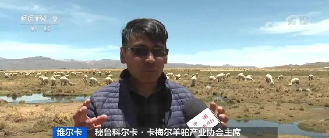 秘魯科爾卡·卡梅爾羊駝產業協會主席 維爾卡:這裏佔地600公頃,一共有400頭羊駝,我們協會有200多個羊駝牧場,羊駝毛的年產量達45噸。