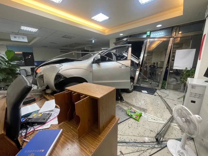 台媒:男子酒後駕車衝進新北市一派出所,現場一片凌亂