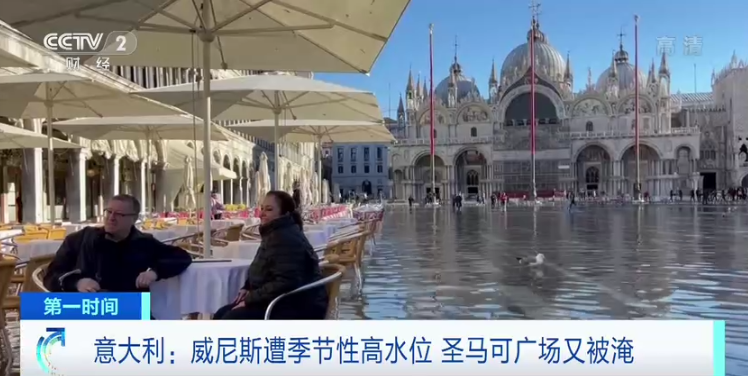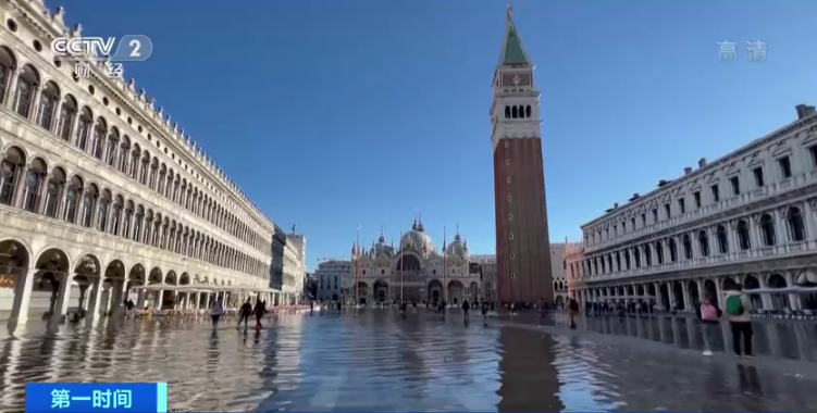 6日上午,威尼斯的最高水位達到100釐米 ,當地地標聖馬可廣場以及周邊的拱廊商店街與大街小巷都被水淹沒。廣場上的積水已經沒過了人們的小腿,不少當地居民穿着防水靴在積水中行走。為了避免弄濕鞋子,當地政府工作人員還在水上架設了人行道。