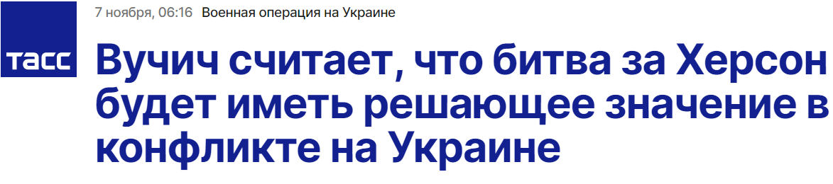 俄媒:武契奇稱赫爾松戰役有決定性意義,甚至提到斯大林格勒戰役