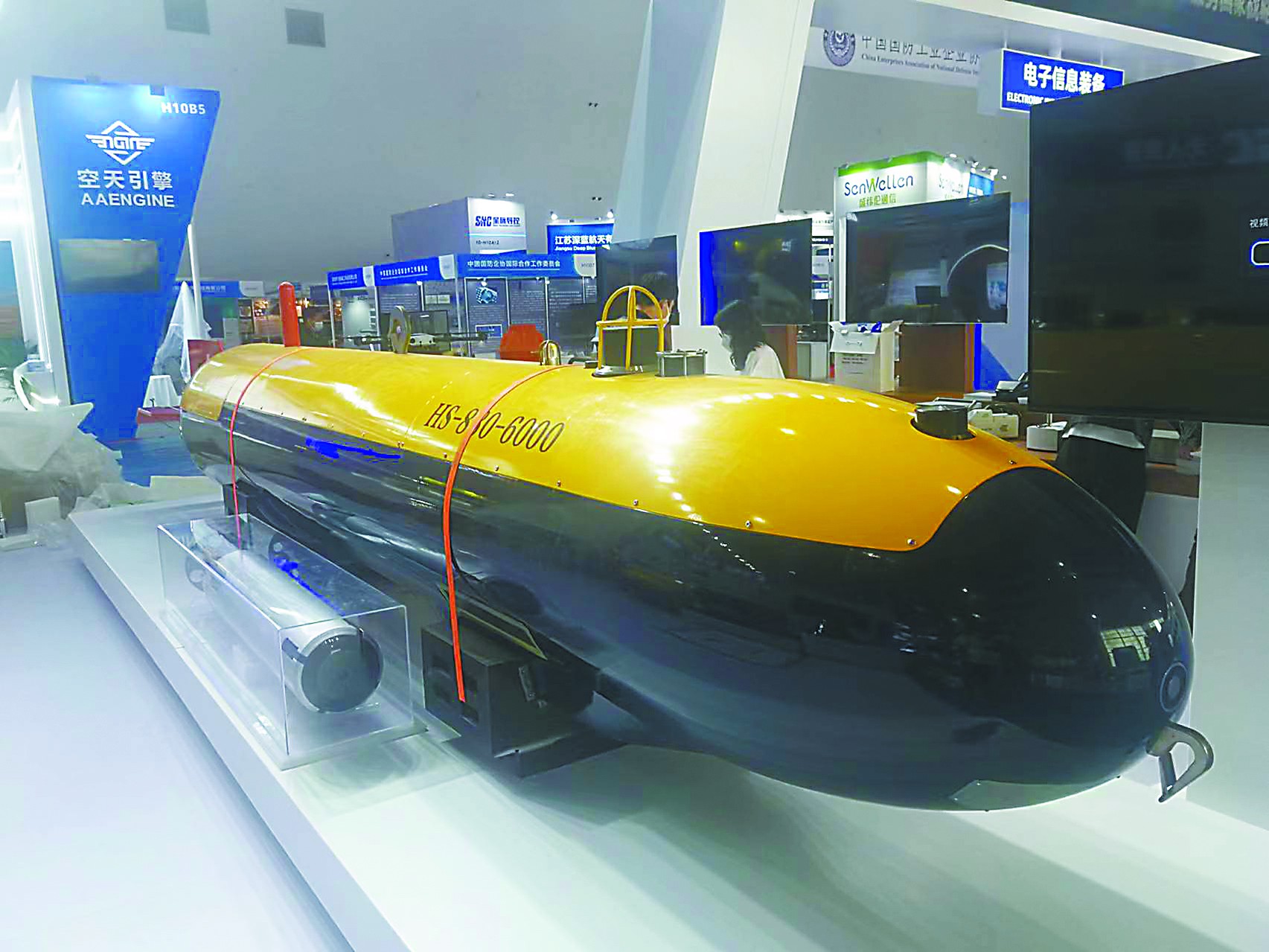 相比公眾相對熟悉的無人機和無人車,無人船和無人潛航器的知名度略低,但本屆珠海航展上展出的相關裝備具備相當高的水平。例如HS-880-6000型自主式水下航行器(AUV)就是國內首型搜救型無人潛航器。它的最大工作深度達6000米,能以3節的速度連續航行24小時,配備有深水遇險目標高分辨低照度照明系統、聲信標定向引導聲吶、水聲探測側掃聲吶等,具備工作水深範圍寬、載荷能力大、續航力長、搜尋探測能力強等特點,可對深海目標全自主精細搜尋、探測、定位,執行深海水下目標搜尋探測和海洋科學研究任務。另一款“守望者”無人潛航器個頭小巧,配備有光學探頭、戰鬥部和通信設備,可以自動靠近水中或海底目標進行觀測、毀傷目標,用於執行反水雷、排障、海底管道巡檢等任務。