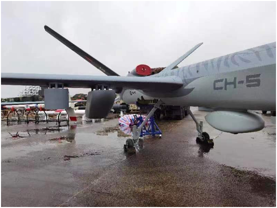 話説彩虹-5不算是新面孔了。這種採用大平直翼佈局的察打一體無人機此前多次參加珠海航展,也已經出口到多個國家。它的飛行高度為2000-5000米,最大飛行時間超過35小時,最大起飛重量3.3噸,任務載荷為480公斤,可以掛載射手系列精確制導彈藥。