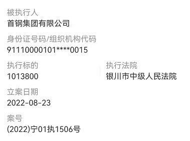 不僅如此,據公開信息顯示,首鋼集團有限公司在2022年8月23日因未按時履行法律義務,被銀川市中級人民法院強制執行【(2022)寧01執1506號】,涉案金額高達上百萬元。在存在未按時履行法律義務被法院強制執行的背景下,仍然大幅溢價認購華夏銀行股份,其合理更加值的拷問。