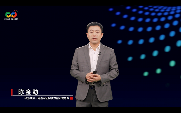 華為政務一網通軍團解決方案研發總裁陳金助代表華為正式發佈了城市感知體系的最新解決方案——城市融合感知解決方案。解決方案打通城市全域感知觸點,構建“可看,可算,可控”城市融合感知平台,觸點感知海量數據、數據生成決策模型、模型優化城市治理,讓城市“活”起來,加速城市數字化轉型。