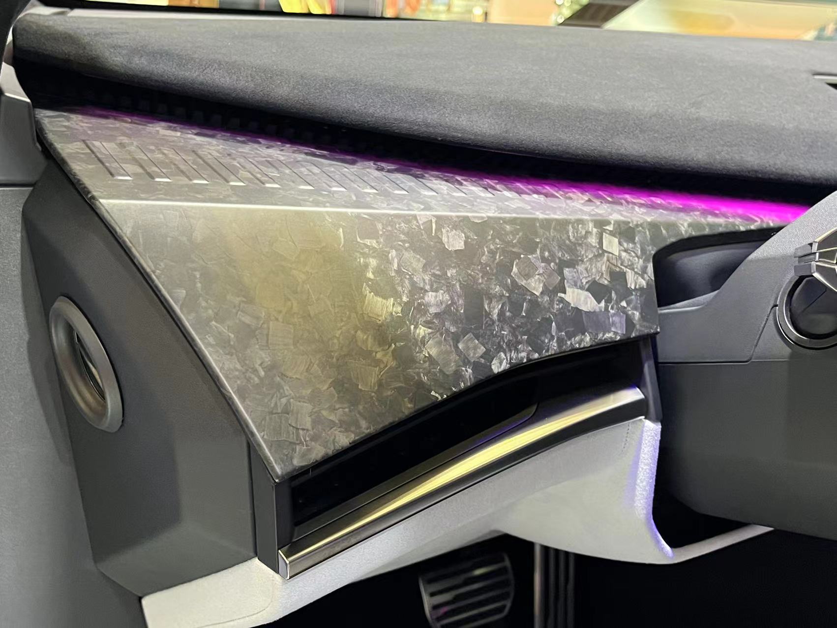 據介紹,HiPhi Z融入了高合與科思創共同開發的可使用在車輛內飾上的大理石紋可回收碳纖維複合材料,該材料不僅有獨特新穎的科技造型,而且能實現回收和再利用,不僅如此,這款可回收碳纖維材料與鋁材相比 還能夠降低百分之三十以上的重量,具備輕量化高強度的特點。