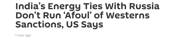 美方回應了!美國務院發言人:印俄能源合作不違反現有對俄製裁措施