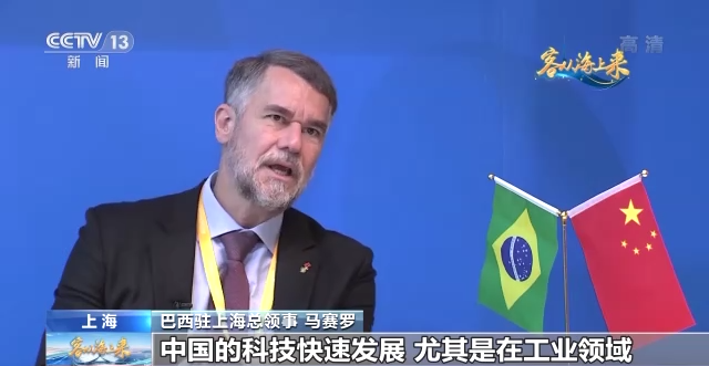 *巴西駐上海總領事 馬賽羅:*中國的科技快速發展,尤其是在工業領域,這創造了更多額外需求和體量,這些需求和繁榮在貿易領域創造了更多機遇。我們認為,我們希望能夠向中國出口更多(類型)的產品,而不只是農產品。