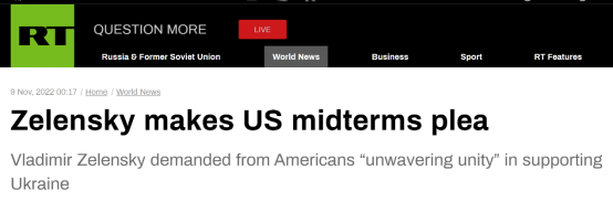 外媒:針對美國中期選舉,澤連斯基喊話美政界團結支持烏克蘭