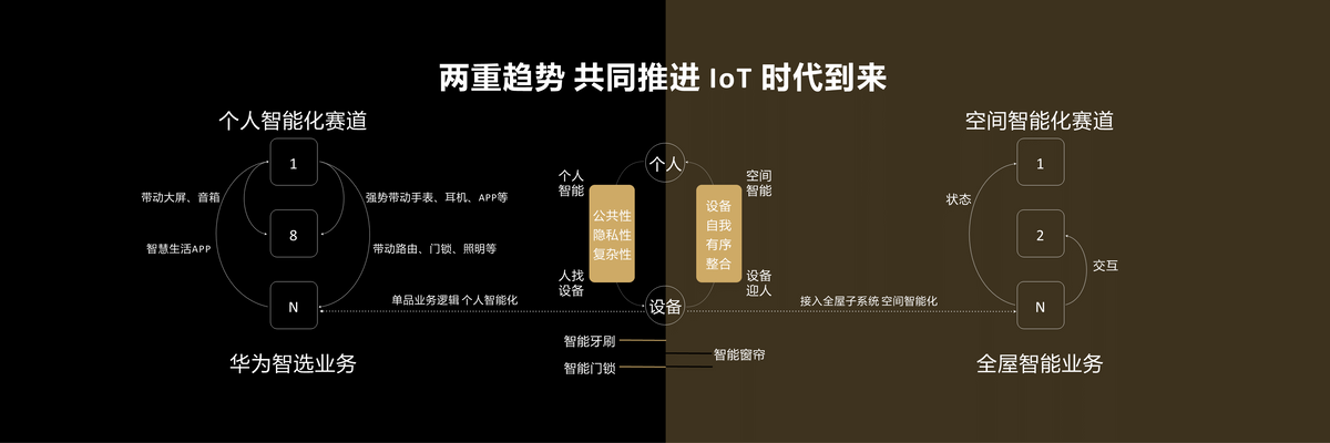 也就是説在個人智能化階段,消費者可以根據自身需求讓空間滿足個人個性化定製的需要。但是華為很快也發現一個問題,家庭生活中會有老人、孩子、甚至有時會有朋友、親戚等不同成員,無法讓每個人都能進行定製。所以華為選擇了從另外一個角度思考問題。華為全屋智能的新思路是“讓空間去迎接人,更好地服務於人”,將空間與設備有序整合起來,讓每個家庭用户都獲得最舒適的場景主動智慧服務。