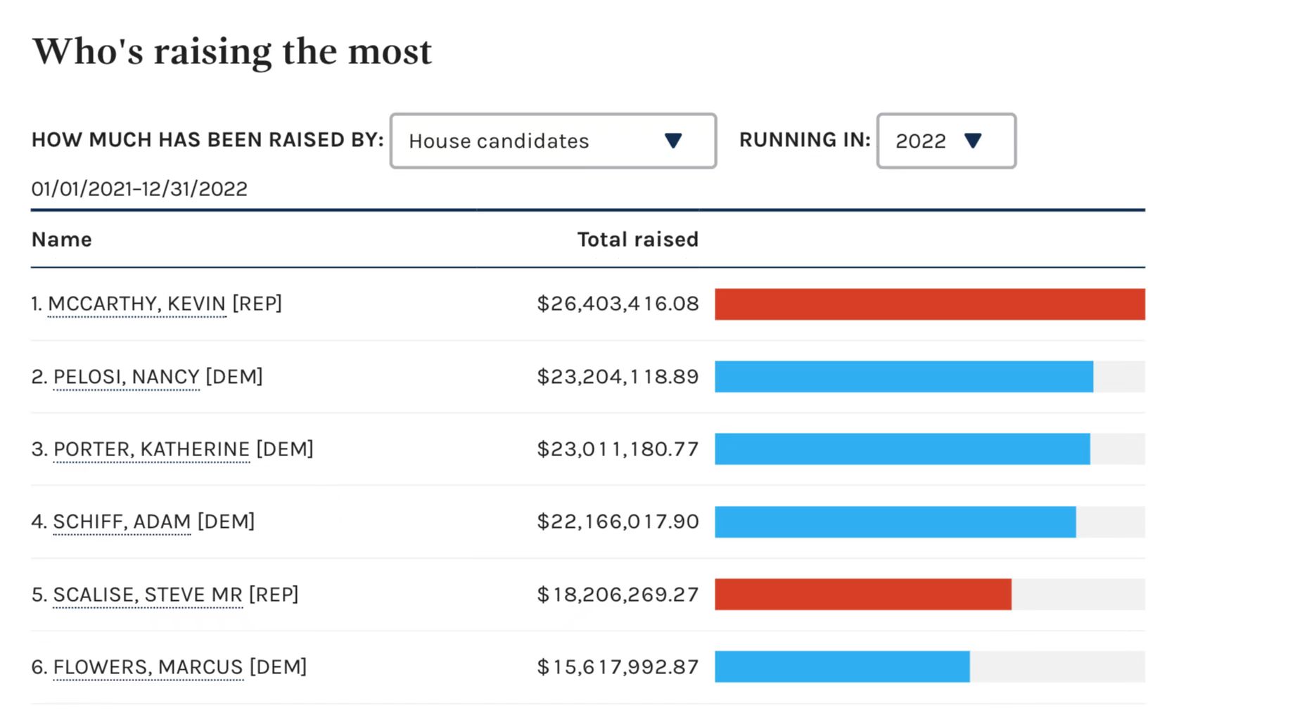 聯邦競選委員會網站上,眾議院候選人籌資排名中,麥卡錫名列第一