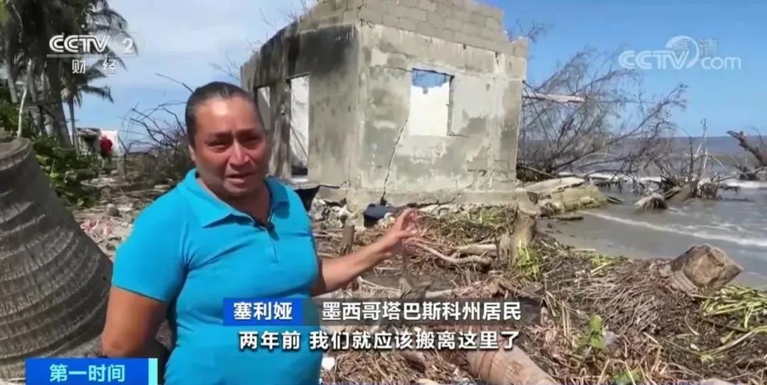 墨西哥塔巴斯科州居民 塞利婭: 兩年前,我們就應該搬離這裏了,因為海水已經到了我家門口,水衝進了卧室,牆上開始出現裂縫,我們不得不撤離了。