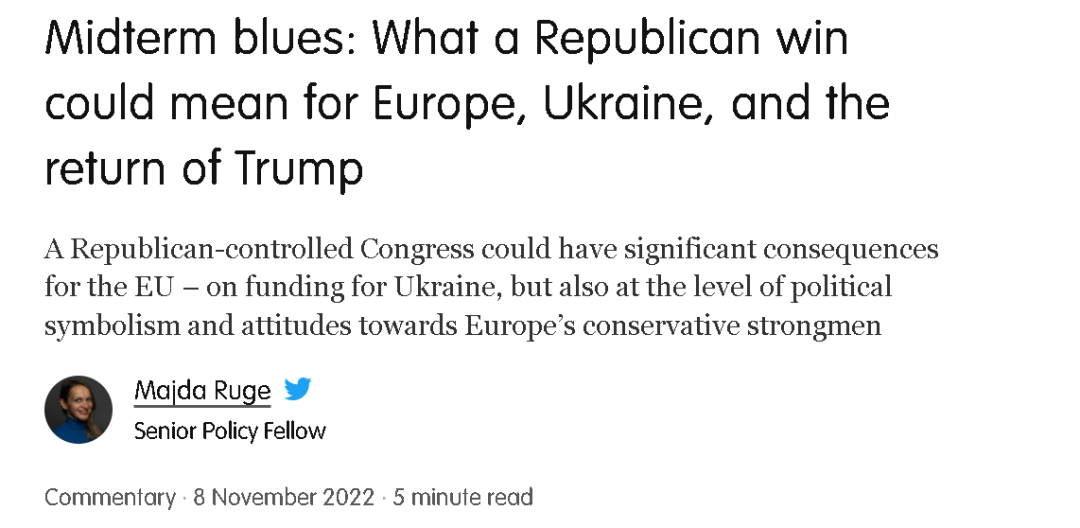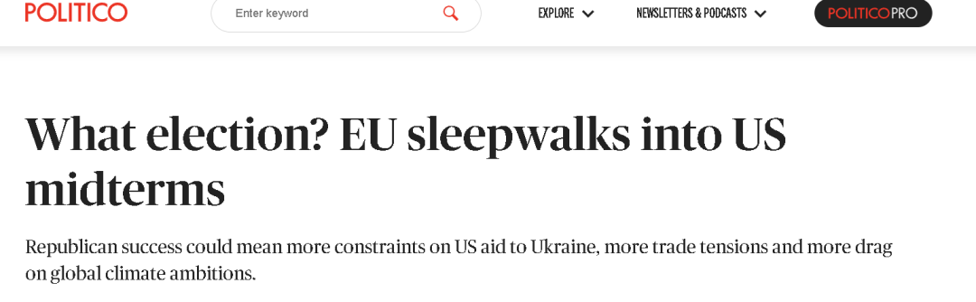 美國政治資訊網站Politico的一篇選前的分析文章就認為,共和黨的勝利意味着美國對於烏克蘭的援助將減少,對於氣候變化問題上的合作將變得冷淡,但與歐洲的貿易摩擦卻會加劇。