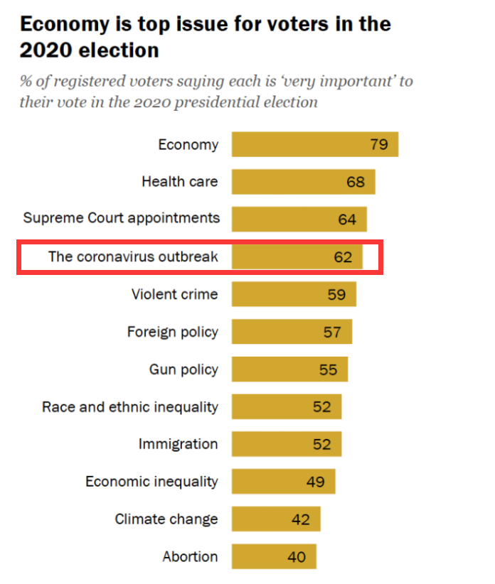 美國民調機構皮尤在2020年和2022年的兩份民調也顯示,在2020年時,疫情曾是美國人最關心的主要議題之一;但到了2022年時,疫情在美國人心中的重要性已經滑落到了很次要的位置上。