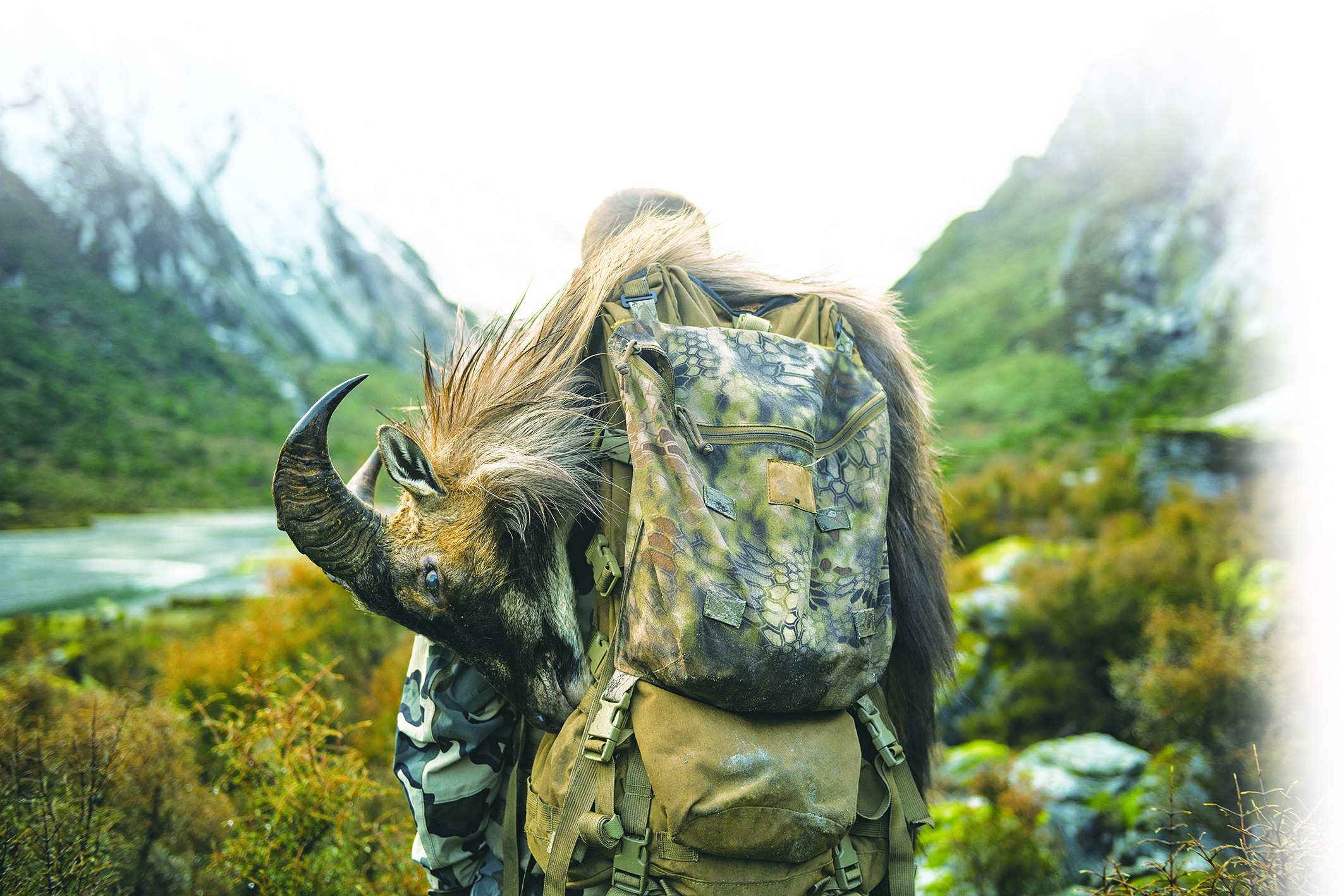 調整好呼吸,在我選擇用跪式射擊姿勢舉槍的一刻,同伴忽然示意我先不要開槍。就在我擔心錯失良機時,只見一隻僅有3個月大小的小羊從草叢後跳出來。看樣子,這肯定是前面那隻成年山羊的寶寶。看到這裏,同伴肯定地對我説,“算了,找下一個目標吧”。我明白他的意思,如果將大山羊獵殺,那麼小羊可能也很難活下去。狩獵,有狩獵的規矩。