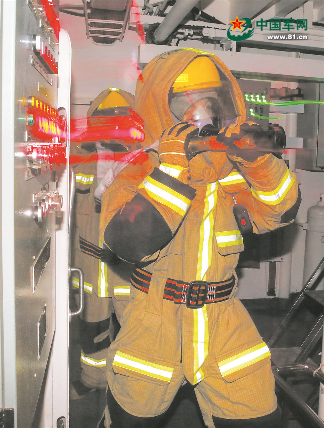 “敵情”不斷,險情迭出。在完成對潛搜索與攻擊演練後,編隊某艦突遭“敵”襲擊失去動力,其他艦艇立即展開救援,實施艦艇拖帶。演練中,面對人員落水、艦艇進水、艙室起火等險情,參訓各艦快速反應,緊張投入營救落水人員、堵漏排水和損管滅火等行動。