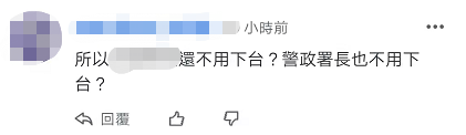 針對此事,有島內網友表示,“上樑不正下樑歪。”也有人質疑,內務部門負責人還不用下台?“警政署長”也不用下台?↓