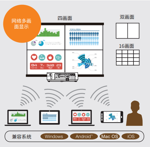 另外,還有MultiPresenter軟件的無線協作演示能力,能夠帶來暢快的企業協同辦公體驗。它整合了無線投影、多畫面顯示、網頁分享、投影控制等多項功能,可兼容多種操作系統,賦能全新移動辦公方式。