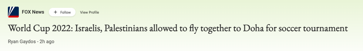 外媒:“突破性協議”,巴勒斯坦和以色列球迷將能同機飛往卡塔爾
