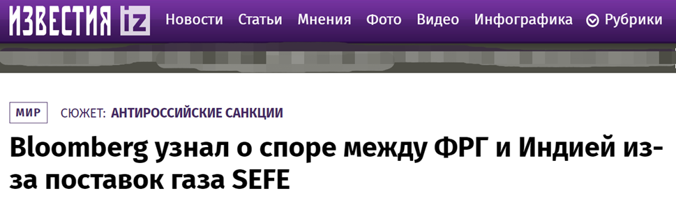 彭博社稱,SEFE 發言人説,“由於俄羅斯對 SEFE 及其子公司實施制裁,SEFE 和 GAIL 都受到供應中斷的影響”。該發言人還稱,“SEFE 和 GAIL 正在根據他們的合同共同解決這一問題”。 而GAIL公司發言人、印度外交部以及德國經濟部和外交部均拒絕對上述報道置評。