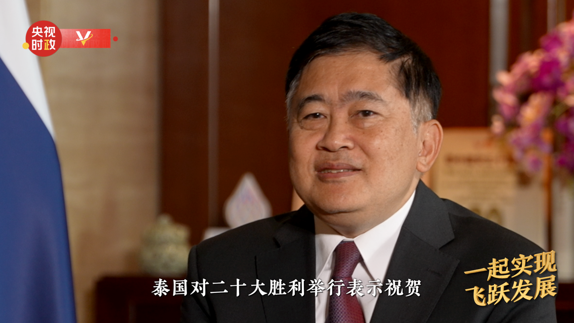 *泰國駐華大使 阿塔育·習薩目:*中共二十大是中國又一次匯聚民智,制定中國未來發展方針政策的大會。我們對中國勝利舉行二十大表示慶祝,並對中國共產黨在治國理政上取得的偉大成就表示讚賞!