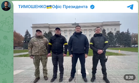 報道稱,季莫申科當天還在Telegram上發佈了一段幾名烏方官員錄製的視頻,他們在視頻中向烏總統澤連斯基彙報烏多個部門開始在赫爾鬆開展工作的情況。↓